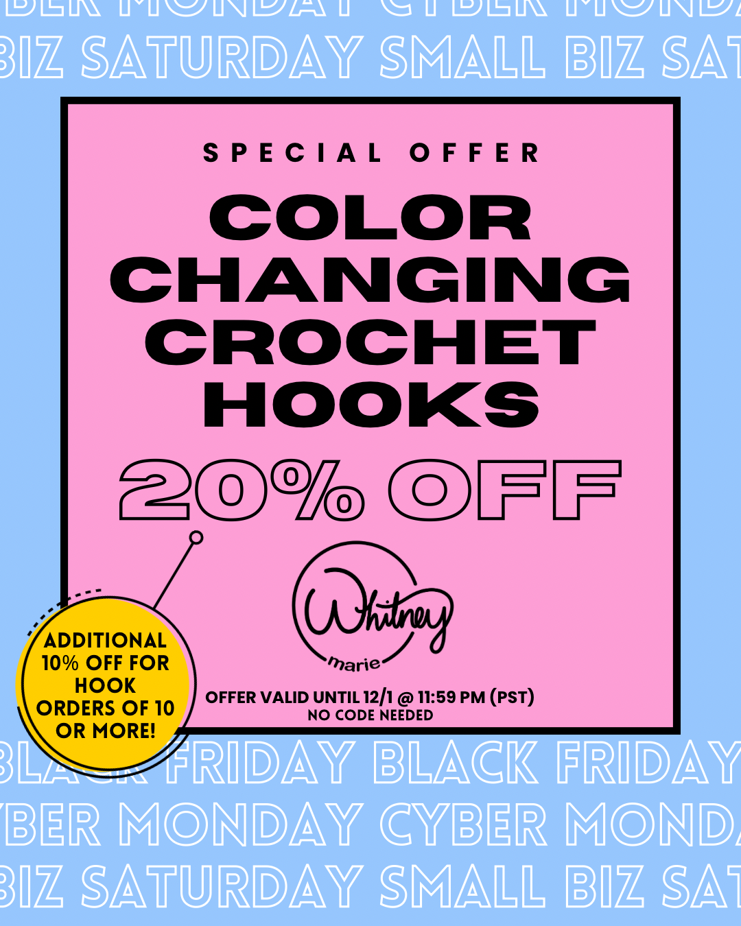 Handmade color-changing crochet hooks inspired by mangoes and summer sunshine.