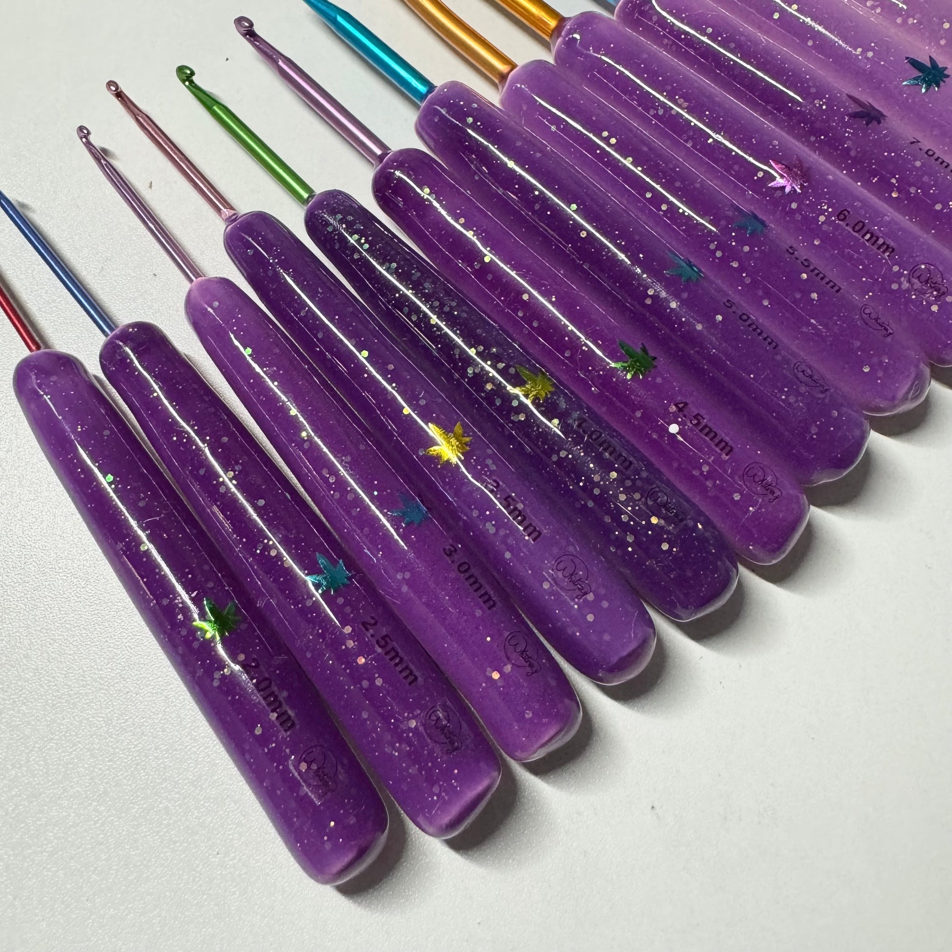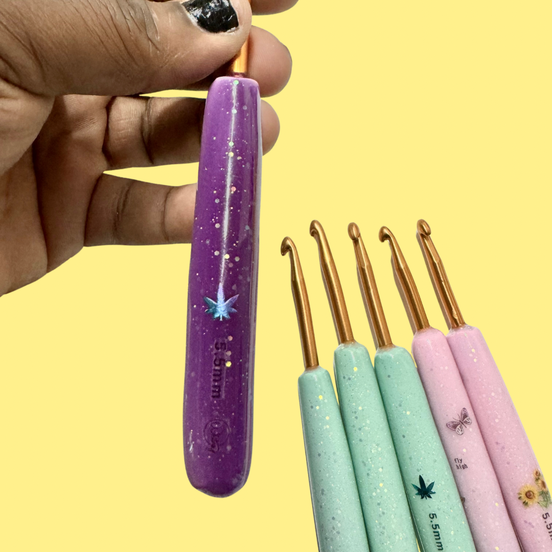 Sun activated crochet hooks!! The hook handles are hand-rolled, made from polymer clay and coated with resin. Colors and patterns will vary.
