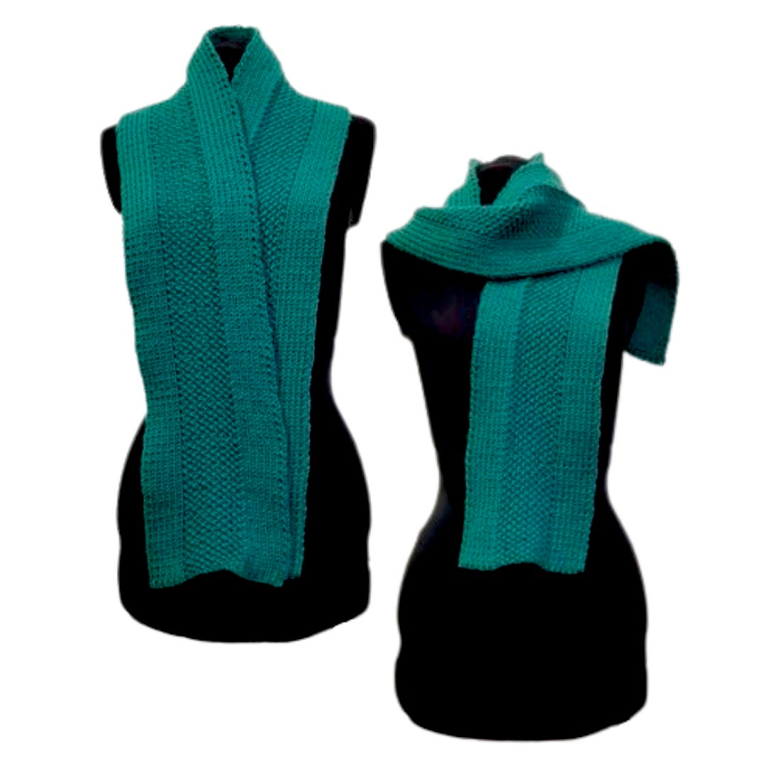 Delve is a simple and classy scarf pattern. Perfect for beginner knitters who would like to delve into the world of textured knitting. It’s also great for the advanced knitter that enjoys mixing stitches. The texture in this pattern is created by a panel of seed stitch, centered between two panels of rib knit.