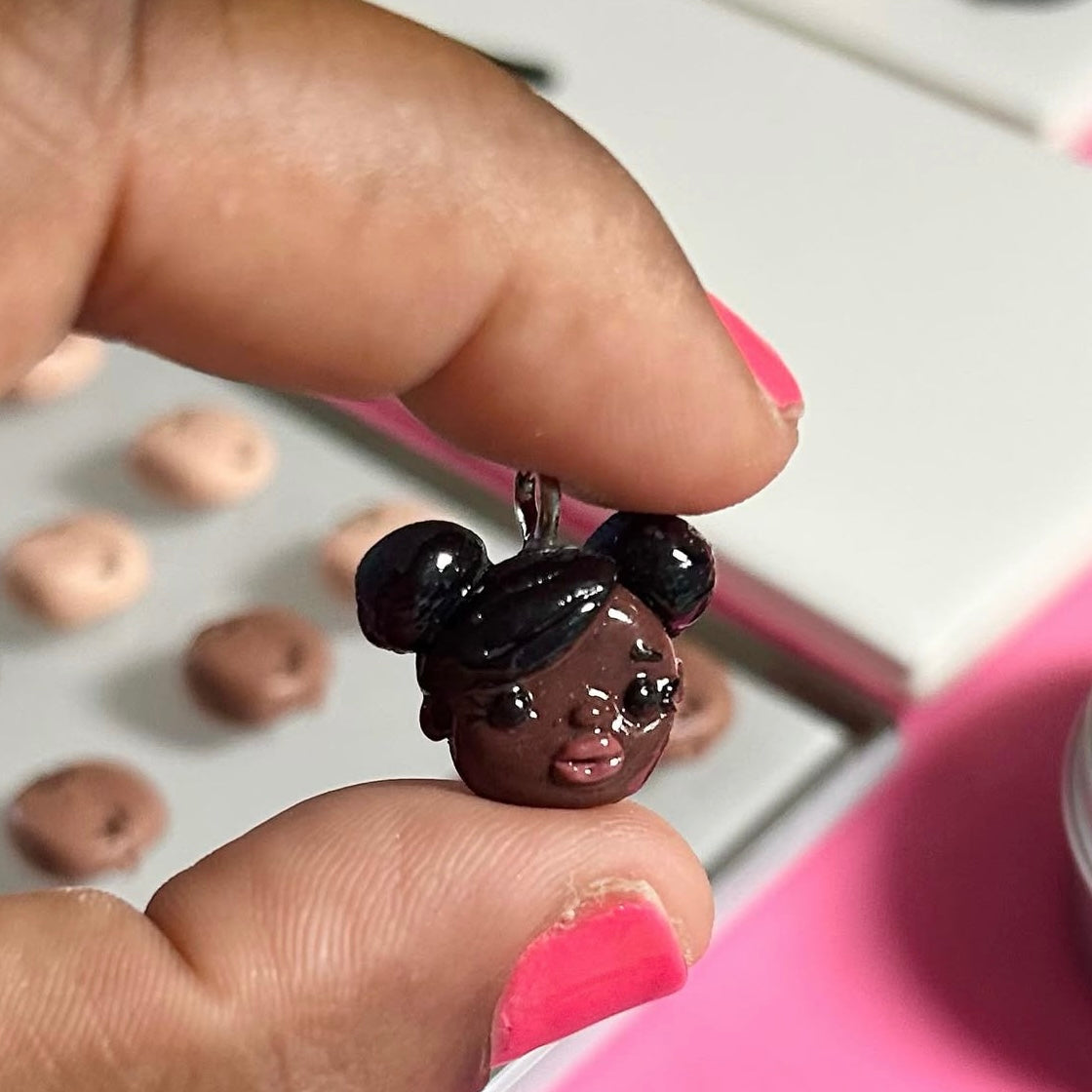 Hand sculpted clay charms inspired by folks like you and me! Every little detail was individually and carefully placed to create a teeny tiny face!