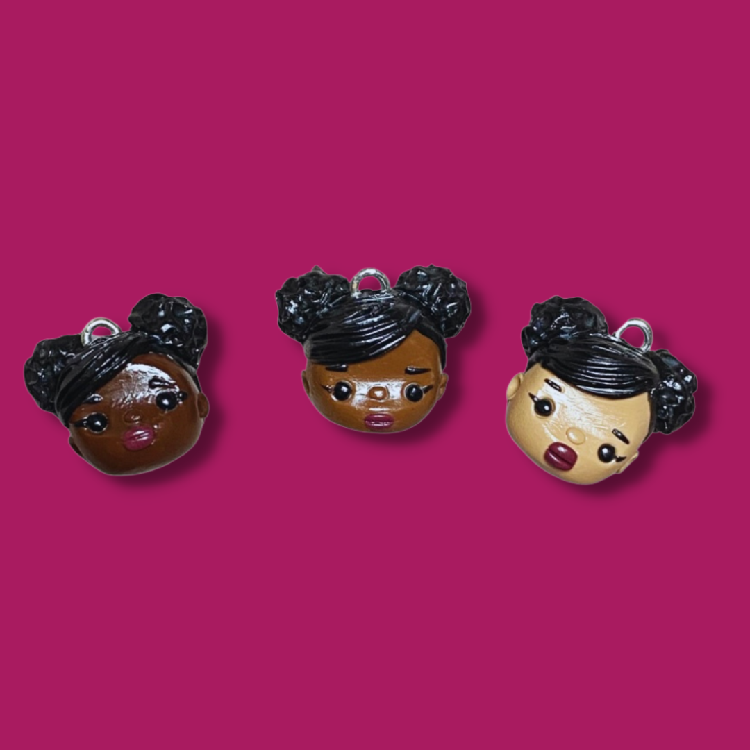 Hand sculpted clay charms inspired by folks like you and me! Every little detail was individually and carefully placed to create a teeny tiny face!