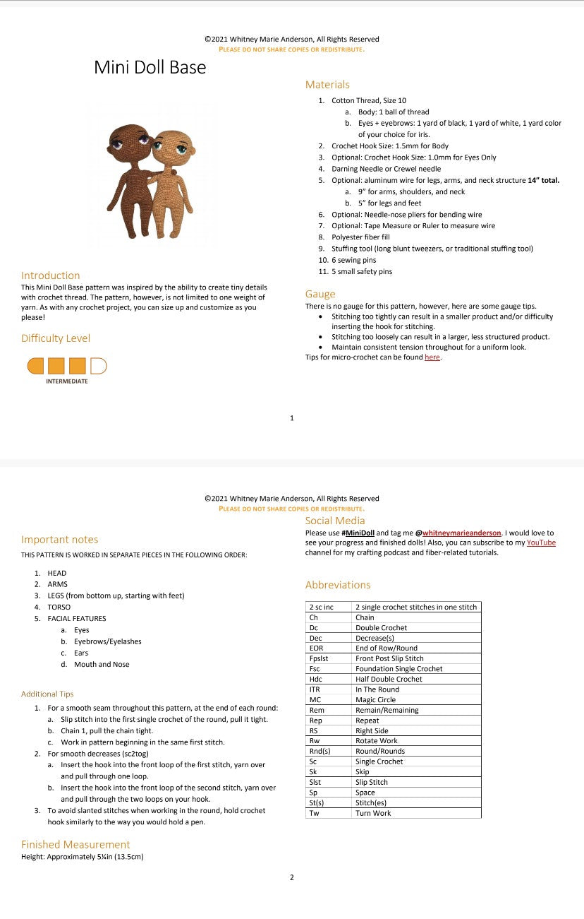 This Mini Doll Base pattern was inspired by the ability to create tiny details with crochet thread. The pattern, however, is not limited to one weight of yarn. As with any crochet project, you can size up and customize as you please!