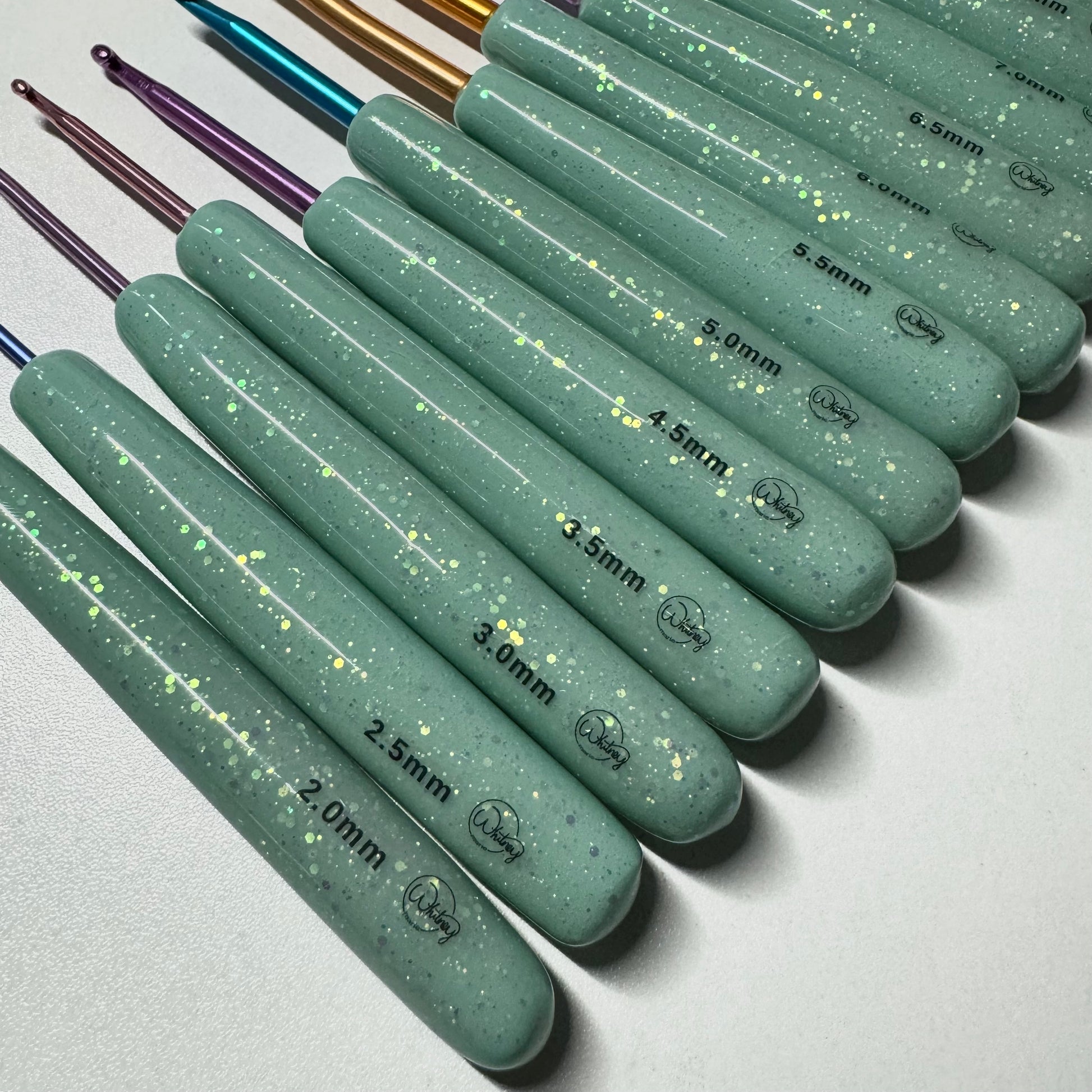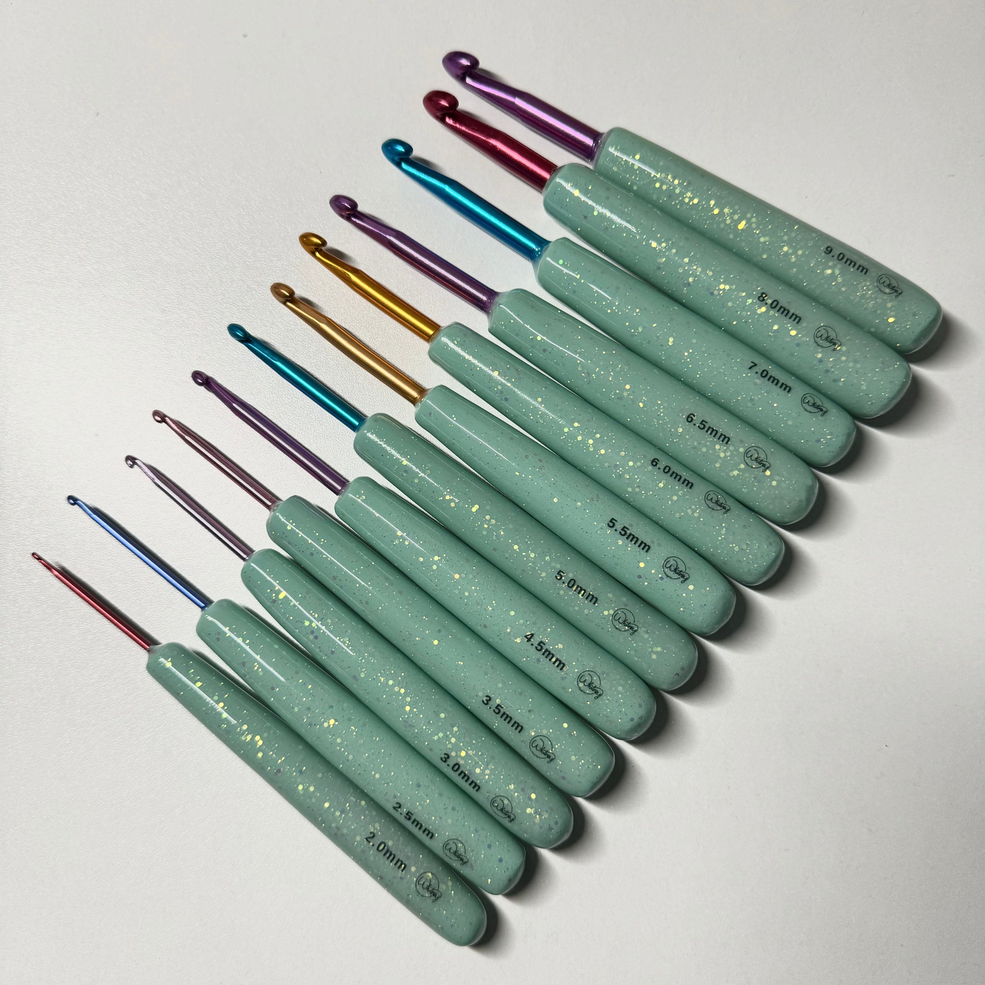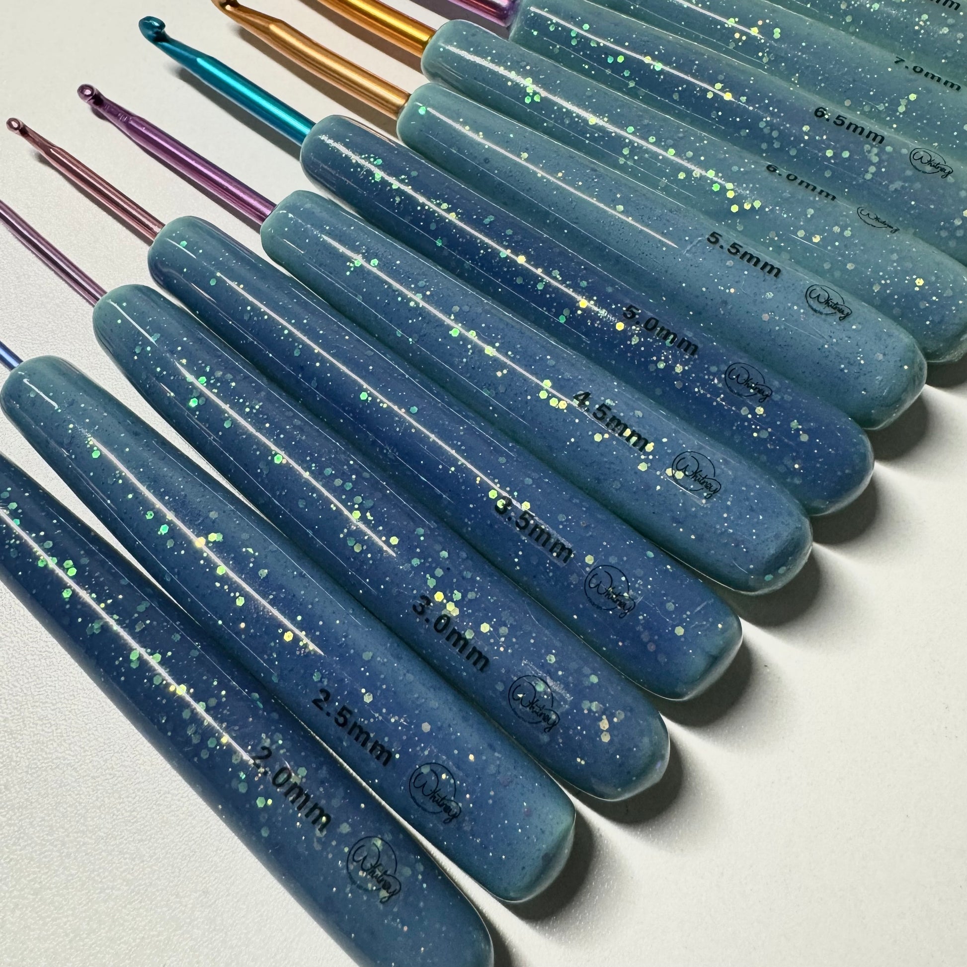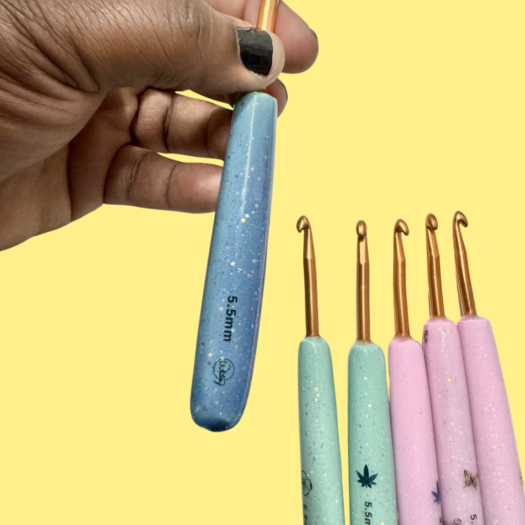 Sun activated crochet hooks!! The hook handles are hand-rolled, made from polymer clay and coated with resin. Colors and patterns will vary.