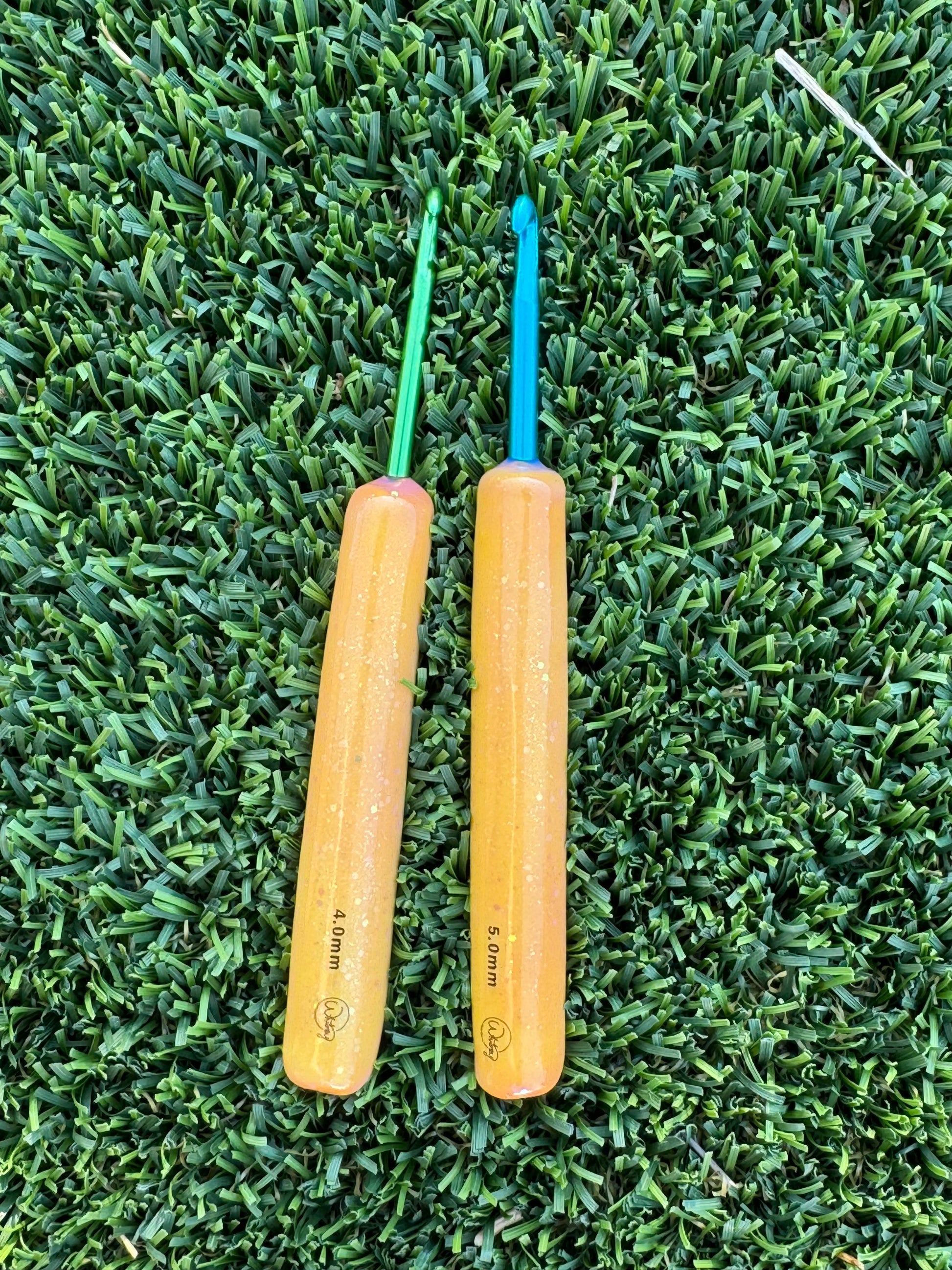 Sun activated crochet hooks!! The hook handles are hand-rolled, made from polymer clay and coated with resin. Colors and patterns will vary.