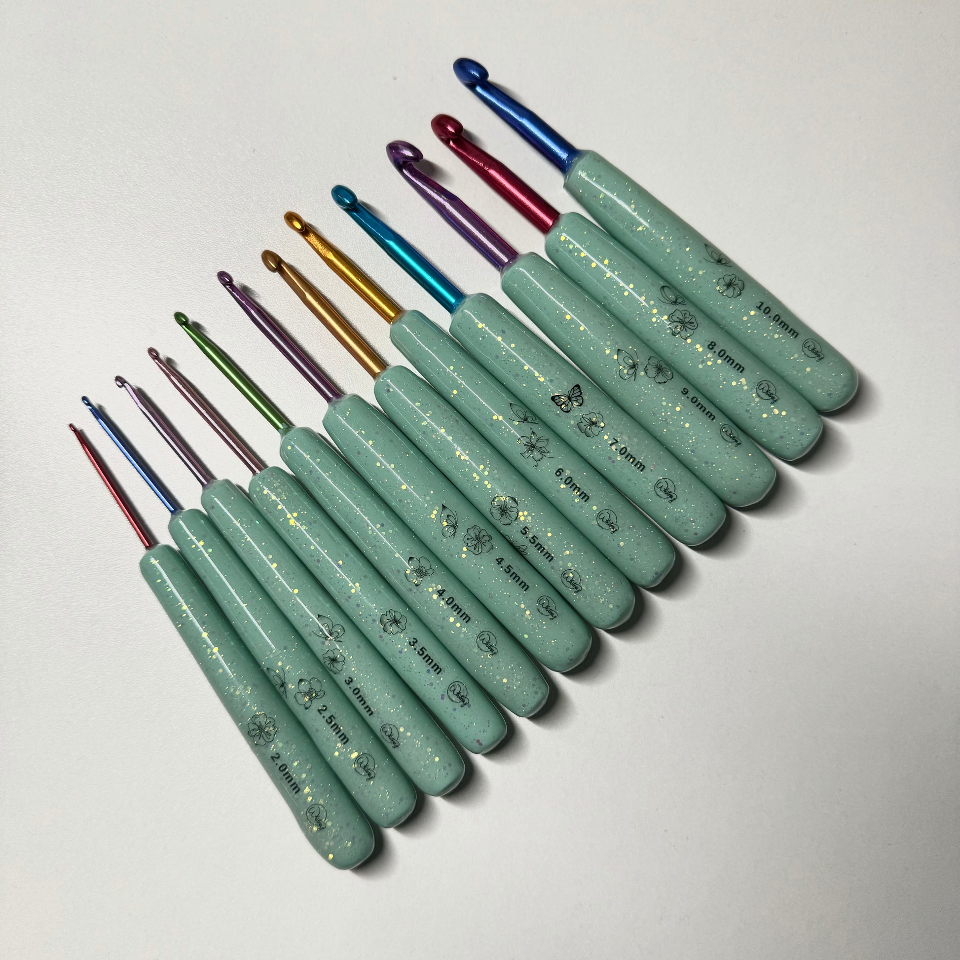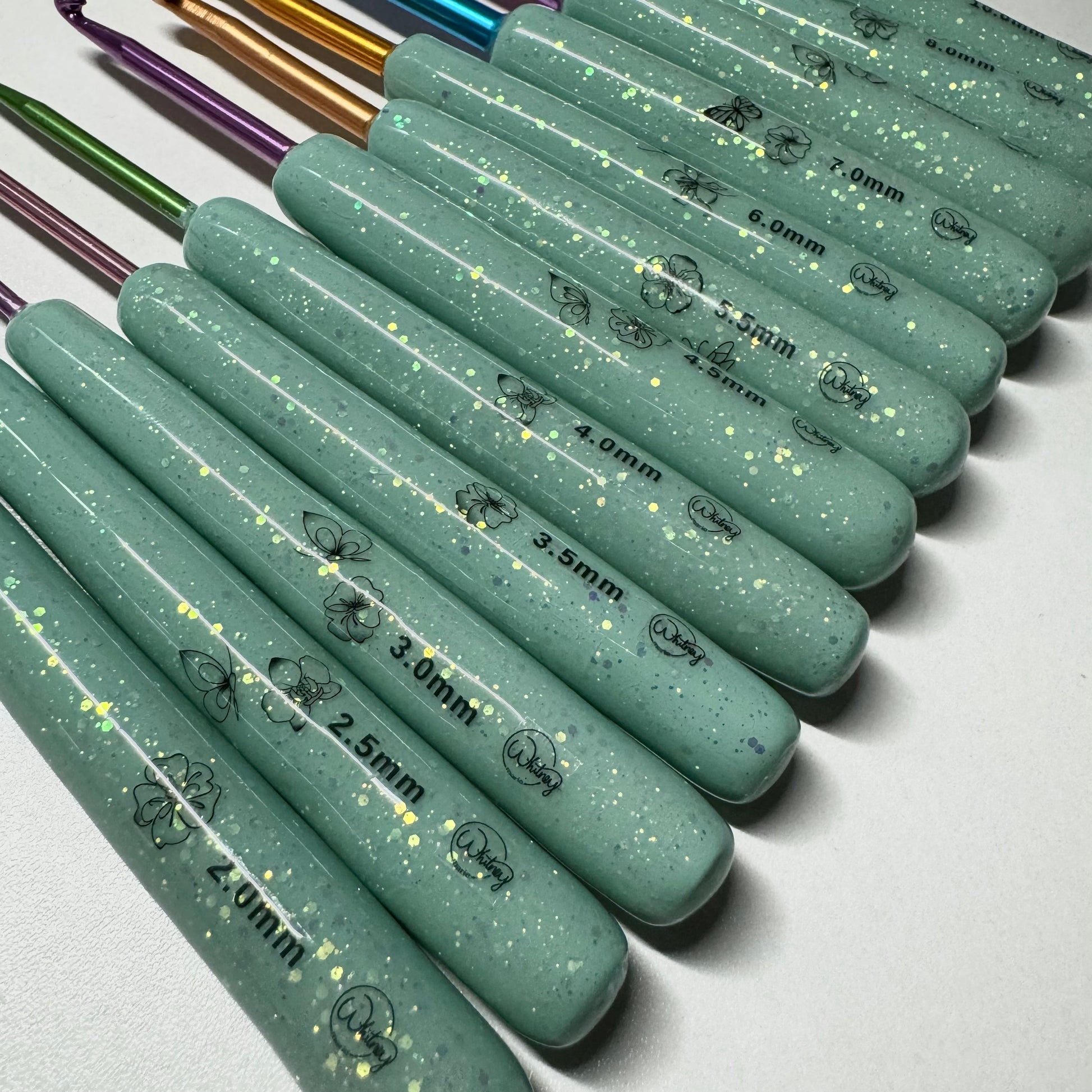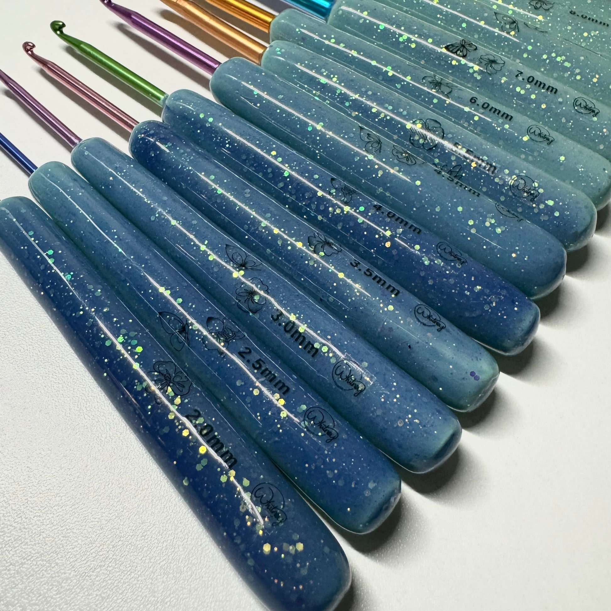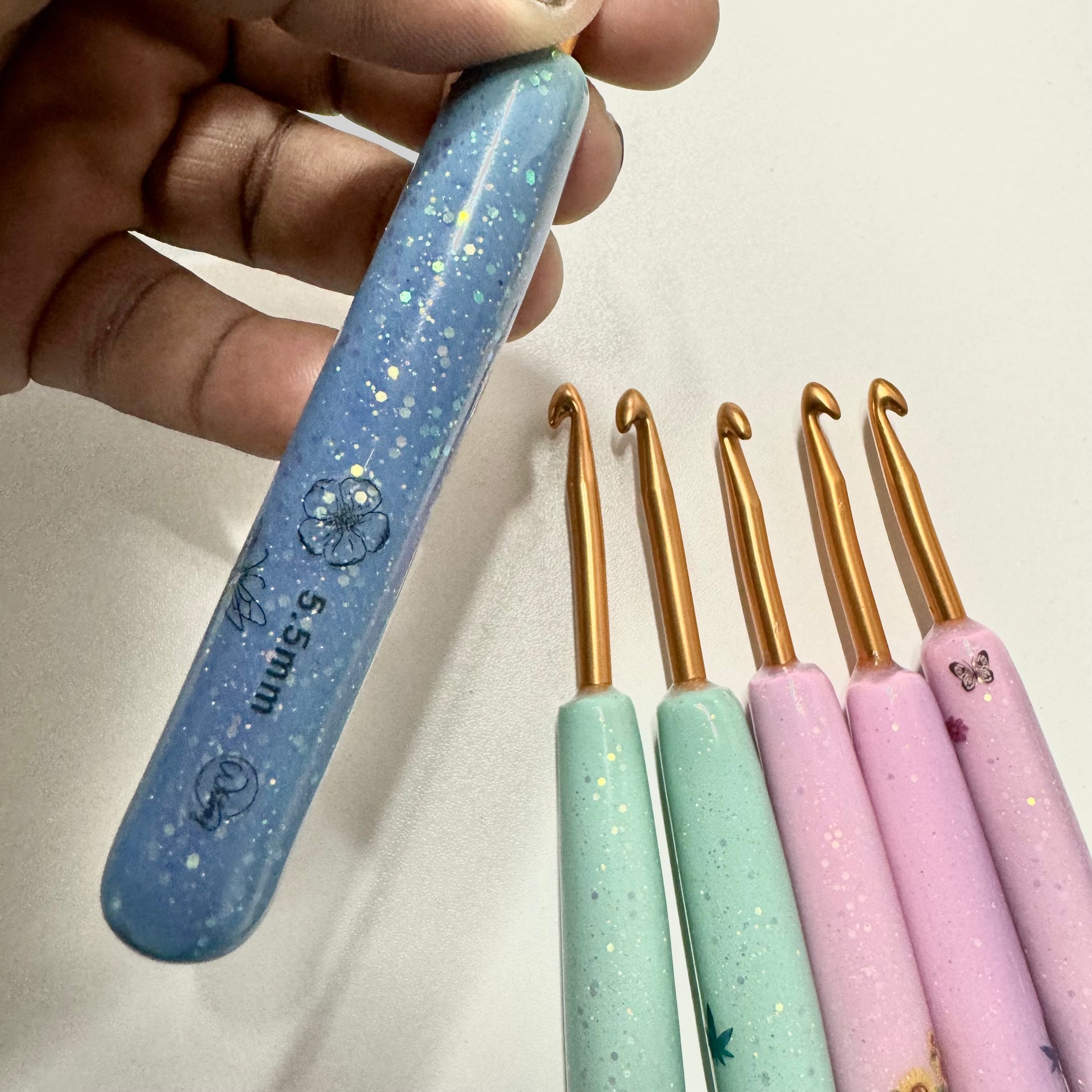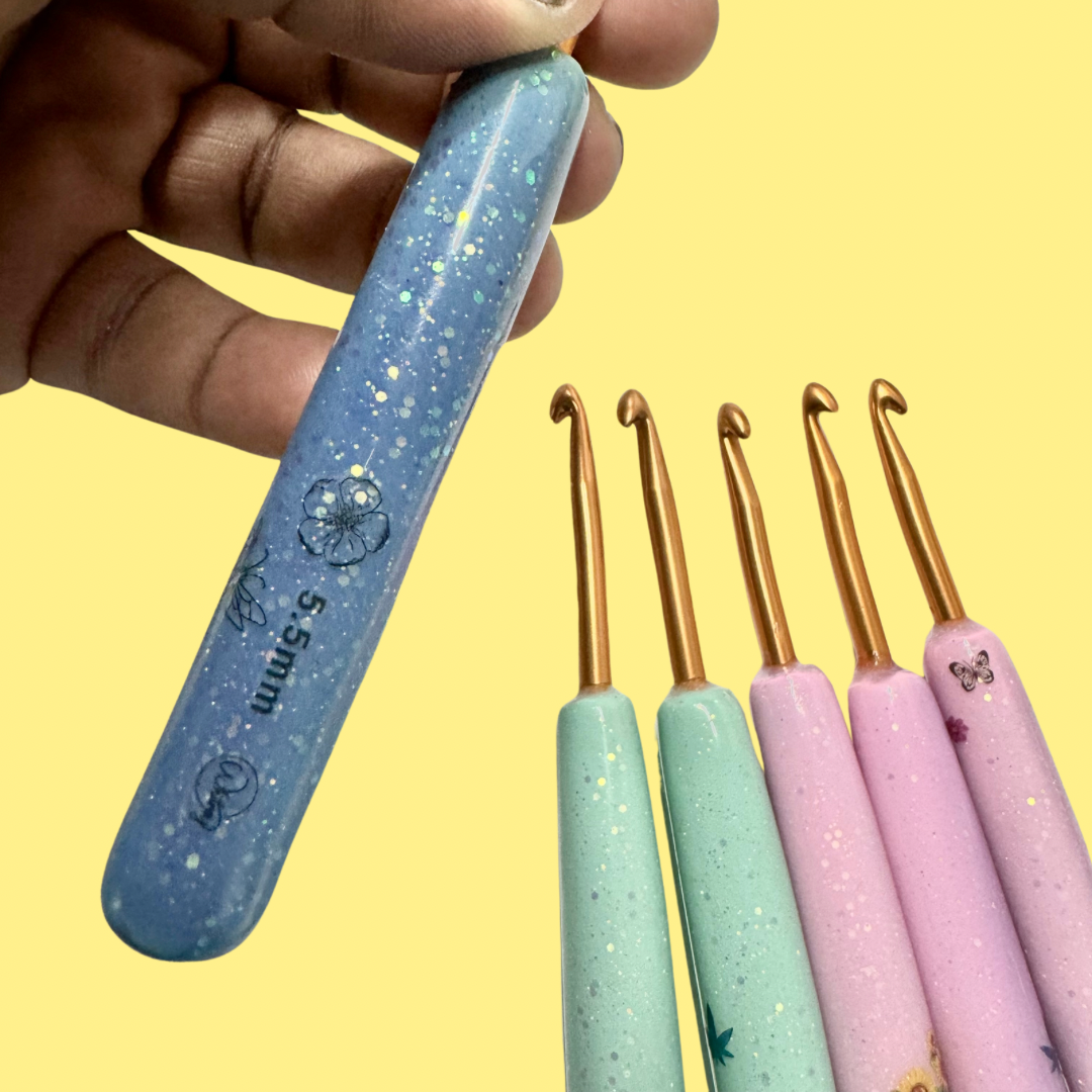 Sun activated crochet hooks!! The hook handles are hand-rolled, made from polymer clay and coated with resin. Colors and patterns will vary.