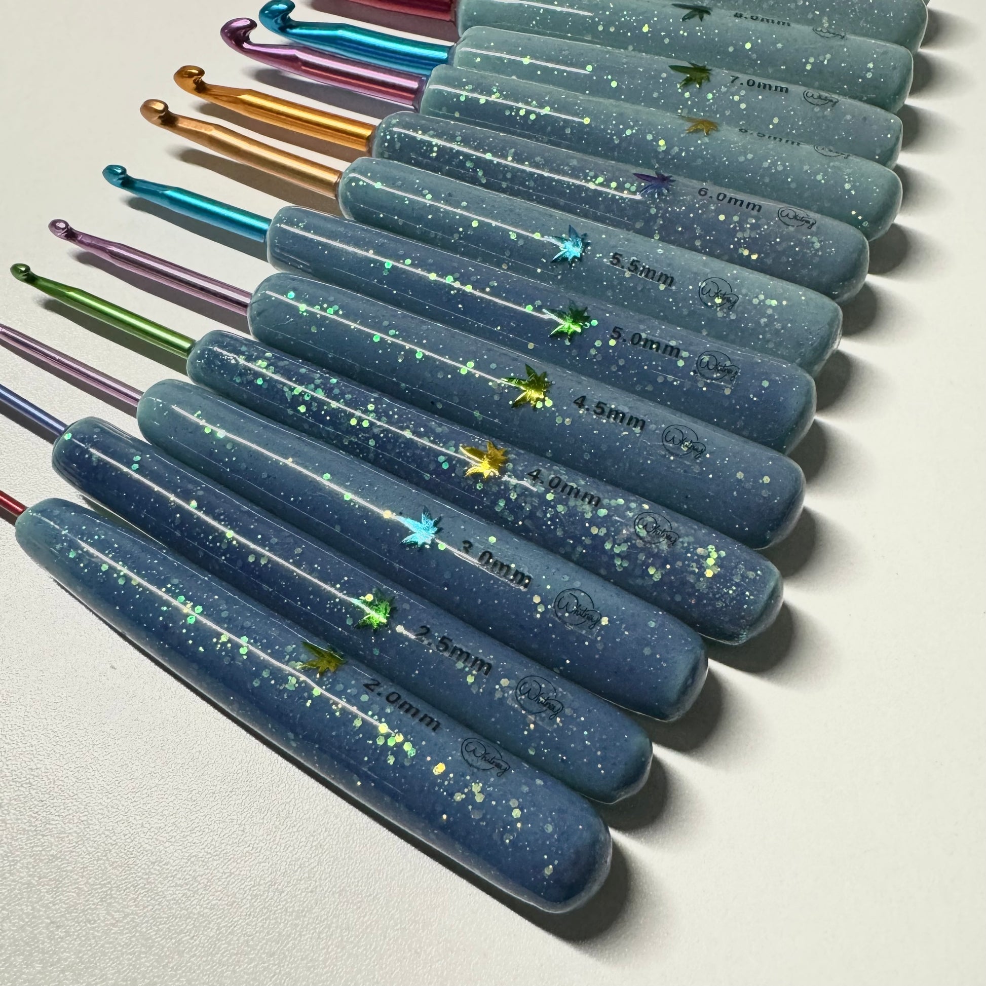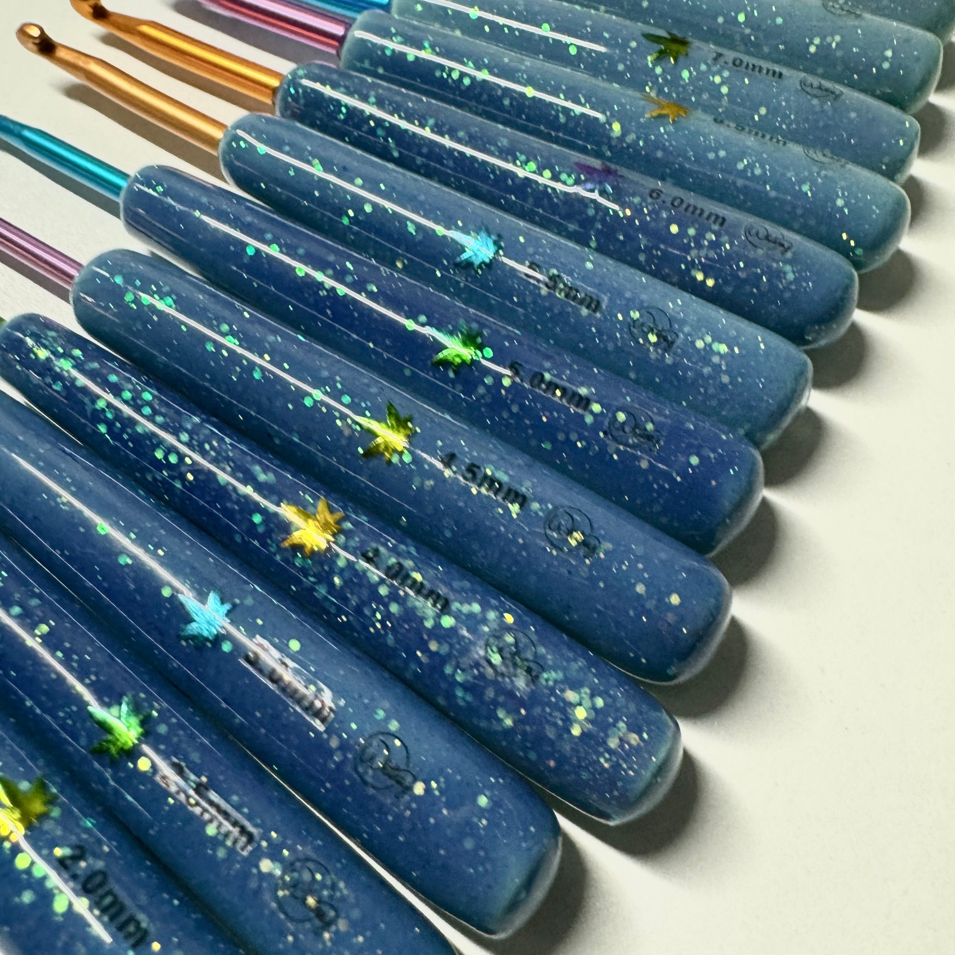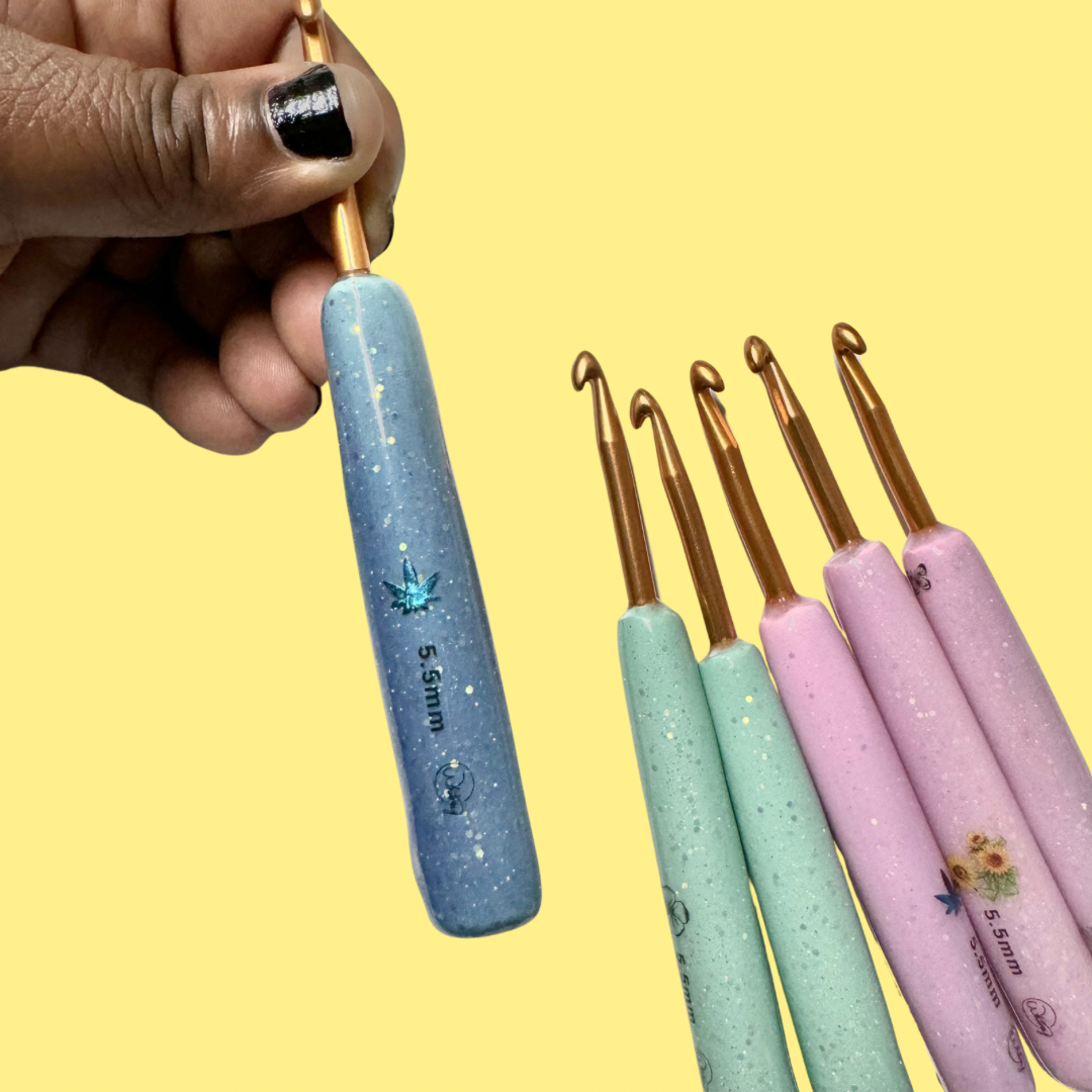 Sun activated crochet hooks!! The hook handles are hand-rolled, made from polymer clay and coated with resin. Colors and patterns will vary.